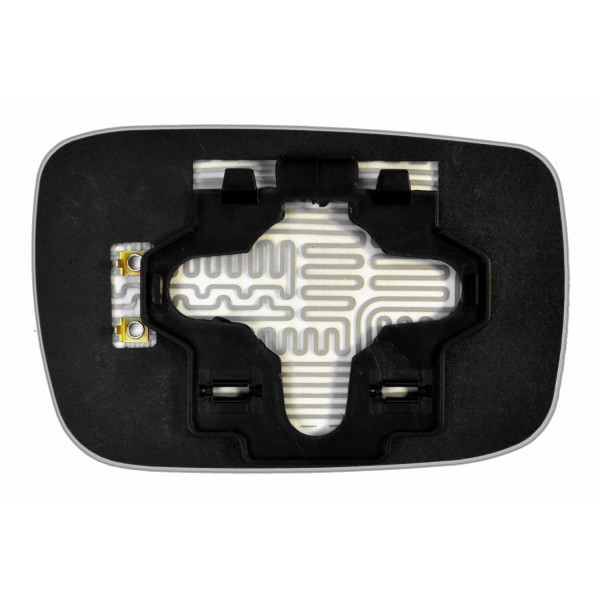 Змінний елемент автодзеркала асферичної форми, яка встановлюється в корпус дзеркала. Завдяки спеціальній випуклій геометрії поверхні водій отримує розширений кут огляду та ефективний контроль за ситуацією на дорозі в сліпих зонах. На світлині елемент дзеркала зі зворотної сторони.