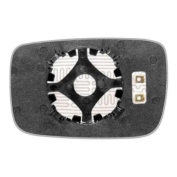 Змінний елемент автодзеркала асферичної форми, яка встановлюється в корпус дзеркала. Завдяки спеціальній випуклій геометрії поверхні водій отримує розширений кут огляду та ефективний контроль за ситуацією на дорозі в сліпих зонах. На світлині елемент дзеркала зі зворотної сторони.