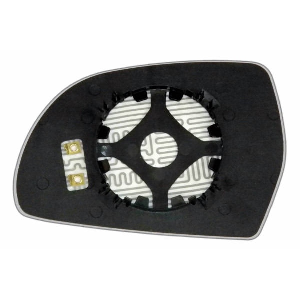 Змінний елемент автодзеркала асферичної форми, яка встановлюється в корпус дзеркала. Завдяки спеціальній випуклій геометрії поверхні водій отримує розширений кут огляду та ефективний контроль за ситуацією на дорозі в сліпих зонах. На світлині елемент дзеркала зі зворотної сторони.
