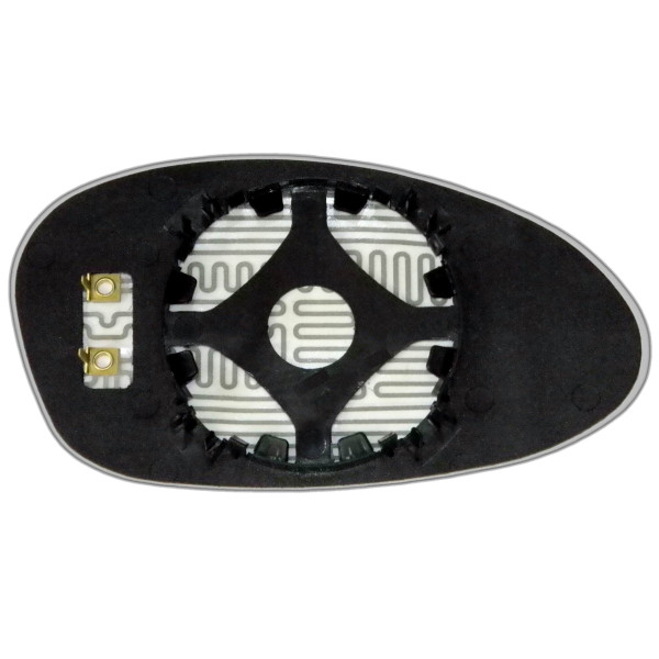 Змінний елемент автодзеркала сферичної форми, яка встановлюється в корпус дзеркала. Завдяки спеціальній випуклій геометрії поверхні водій отримує розширений кут огляду та ефективний контроль за ситуацією на дорозі в сліпих зонах. На світлині елемент дзеркала зі зворотної сторони.