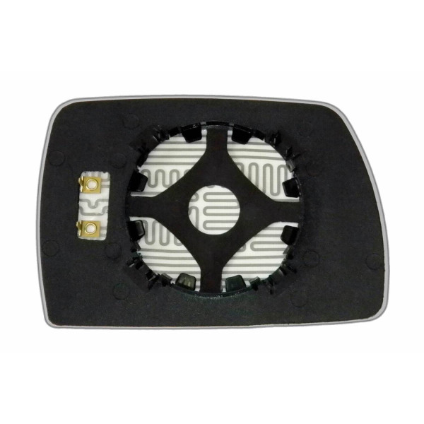 Змінний елемент автодзеркала асферичної форми, яка встановлюється в корпус дзеркала. Завдяки спеціальній випуклій геометрії поверхні водій отримує розширений кут огляду та ефективний контроль за ситуацією на дорозі в сліпих зонах. На світлині елемент дзеркала зі зворотної сторони.
