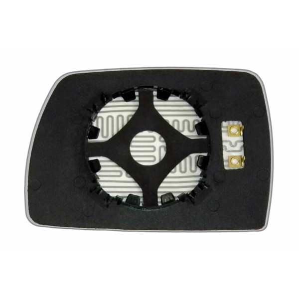 Змінний елемент автодзеркала асферичної форми, яка встановлюється в корпус дзеркала. Завдяки спеціальній випуклій геометрії поверхні водій отримує розширений кут огляду та ефективний контроль за ситуацією на дорозі в сліпих зонах. На світлині елемент дзеркала зі зворотної сторони.