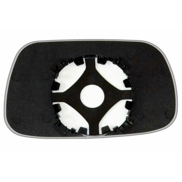 Змінний елемент автодзеркала сферичної форми, яка встановлюється в корпус дзеркала. Завдяки спеціальній випуклій геометрії поверхні водій отримує розширений кут огляду та ефективний контроль за ситуацією на дорозі в сліпих зонах. На світлині елемент дзеркала зі зворотної сторони.