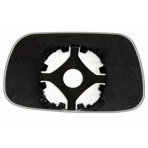 Змінний елемент автодзеркала асферичної форми, яка встановлюється в корпус дзеркала. Завдяки спеціальній випуклій геометрії поверхні водій отримує розширений кут огляду та ефективний контроль за ситуацією на дорозі в сліпих зонах. На світлині елемент дзеркала зі зворотної сторони.