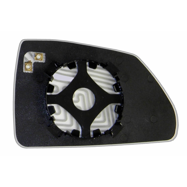 Змінний елемент автодзеркала асферичної форми, яка встановлюється в корпус дзеркала. Завдяки спеціальній випуклій геометрії поверхні водій отримує розширений кут огляду та ефективний контроль за ситуацією на дорозі в сліпих зонах. На світлині елемент дзеркала зі зворотної сторони.