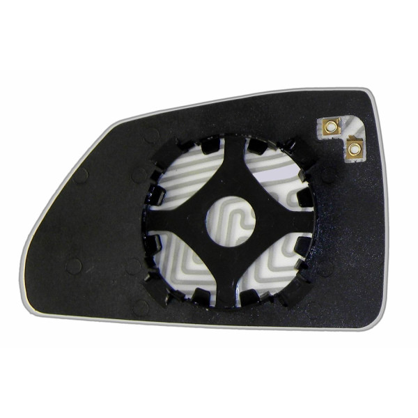 Змінний елемент автодзеркала асферичної форми, яка встановлюється в корпус дзеркала. Завдяки спеціальній випуклій геометрії поверхні водій отримує розширений кут огляду та ефективний контроль за ситуацією на дорозі в сліпих зонах. На світлині елемент дзеркала зі зворотної сторони.