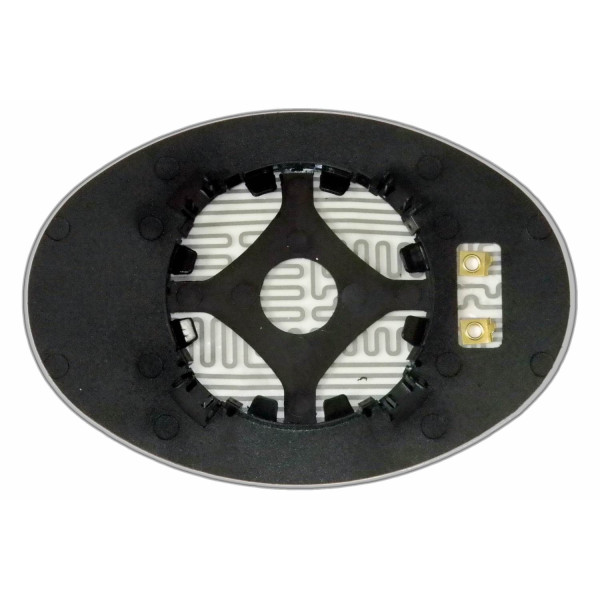 Змінний елемент автодзеркала асферичної форми, яка встановлюється в корпус дзеркала. Завдяки спеціальній випуклій геометрії поверхні водій отримує розширений кут огляду та ефективний контроль за ситуацією на дорозі в сліпих зонах. На світлині елемент дзеркала зі зворотної сторони.