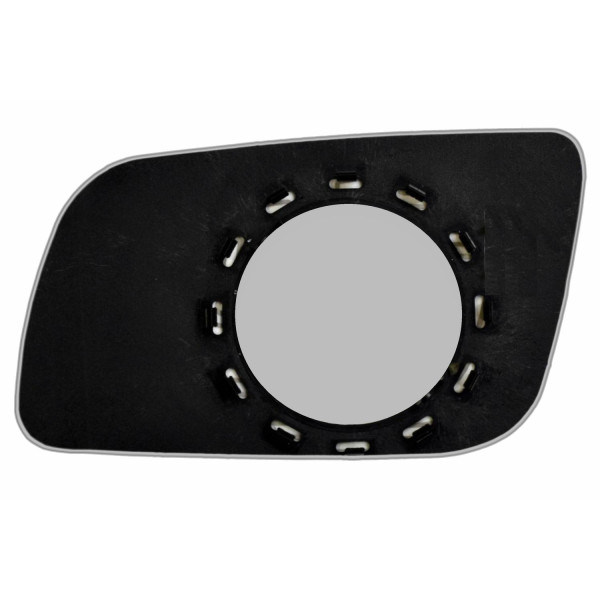 Змінний елемент автодзеркала асферичної форми, яка встановлюється в корпус дзеркала. Завдяки спеціальній випуклій геометрії поверхні водій отримує розширений кут огляду та ефективний контроль за ситуацією на дорозі в сліпих зонах. На світлині елемент дзеркала зі зворотної сторони.