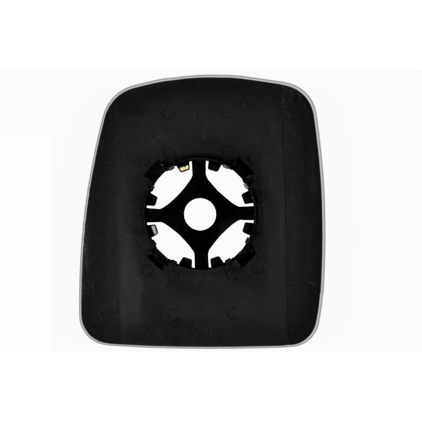 Змінний елемент автодзеркала асферичної форми, яка встановлюється в корпус дзеркала. Завдяки спеціальній випуклій геометрії поверхні водій отримує розширений кут огляду та ефективний контроль за ситуацією на дорозі в сліпих зонах. На світлині елемент дзеркала зі зворотної сторони.