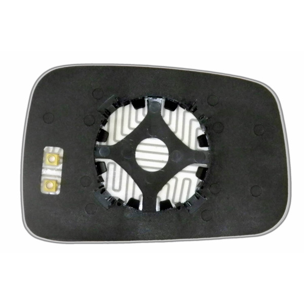 Змінний елемент автодзеркала асферичної форми, яка встановлюється в корпус дзеркала. Завдяки спеціальній випуклій геометрії поверхні водій отримує розширений кут огляду та ефективний контроль за ситуацією на дорозі в сліпих зонах. На світлині елемент дзеркала зі зворотної сторони.
