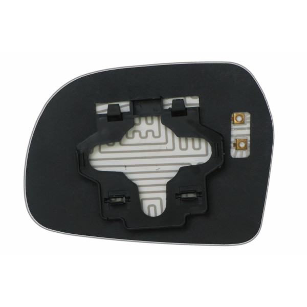 Змінний елемент автодзеркала асферичної форми, яка встановлюється в корпус дзеркала. Завдяки спеціальній випуклій геометрії поверхні водій отримує розширений кут огляду та ефективний контроль за ситуацією на дорозі в сліпих зонах. На світлині елемент дзеркала зі зворотної сторони.