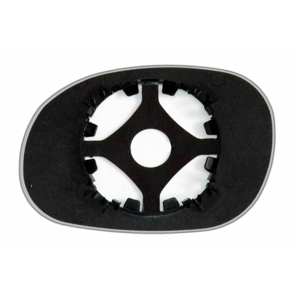 Змінний елемент автодзеркала асферичної форми, яка встановлюється в корпус дзеркала. Завдяки спеціальній випуклій геометрії поверхні водій отримує розширений кут огляду та ефективний контроль за ситуацією на дорозі в сліпих зонах. На світлині елемент дзеркала зі зворотної сторони.