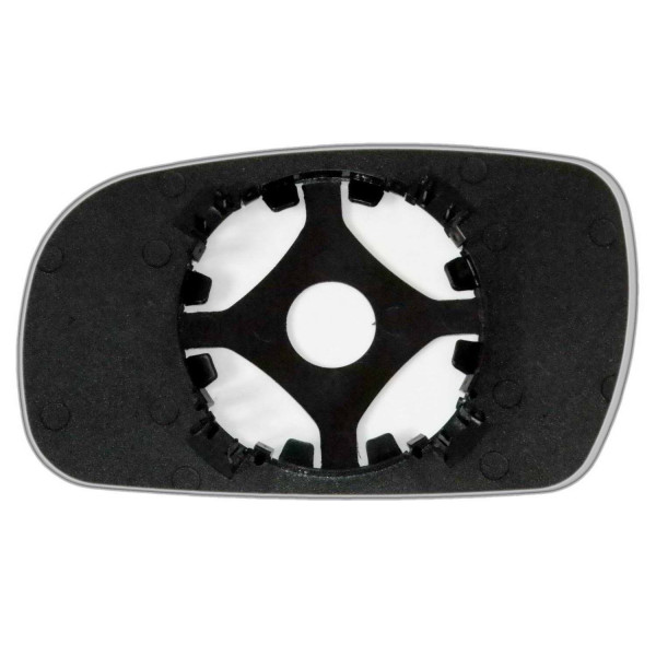 Змінний елемент автодзеркала асферичної форми, яка встановлюється в корпус дзеркала. Завдяки спеціальній випуклій геометрії поверхні водій отримує розширений кут огляду та ефективний контроль за ситуацією на дорозі в сліпих зонах. На світлині елемент дзеркала зі зворотної сторони.