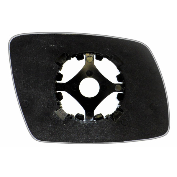 Змінний елемент автодзеркала асферичної форми, яка встановлюється в корпус дзеркала. Завдяки спеціальній випуклій геометрії поверхні водій отримує розширений кут огляду та ефективний контроль за ситуацією на дорозі в сліпих зонах. На світлині елемент дзеркала зі зворотної сторони.