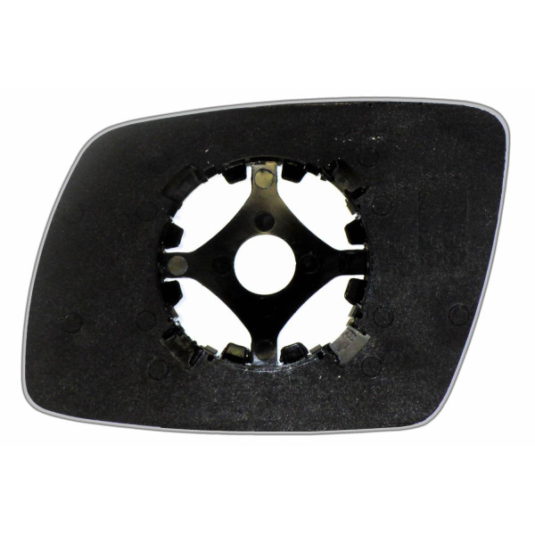 Змінний елемент автодзеркала асферичної форми, яка встановлюється в корпус дзеркала. Завдяки спеціальній випуклій геометрії поверхні водій отримує розширений кут огляду та ефективний контроль за ситуацією на дорозі в сліпих зонах. На світлині елемент дзеркала зі зворотної сторони.