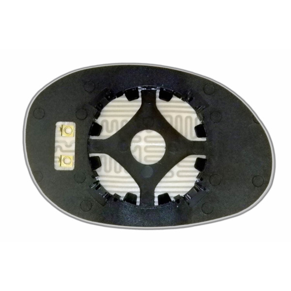 Змінний елемент автодзеркала сферичної форми, яка встановлюється в корпус дзеркала. Завдяки спеціальній випуклій геометрії поверхні водій отримує розширений кут огляду та ефективний контроль за ситуацією на дорозі в сліпих зонах. На світлині елемент дзеркала зі зворотної сторони.