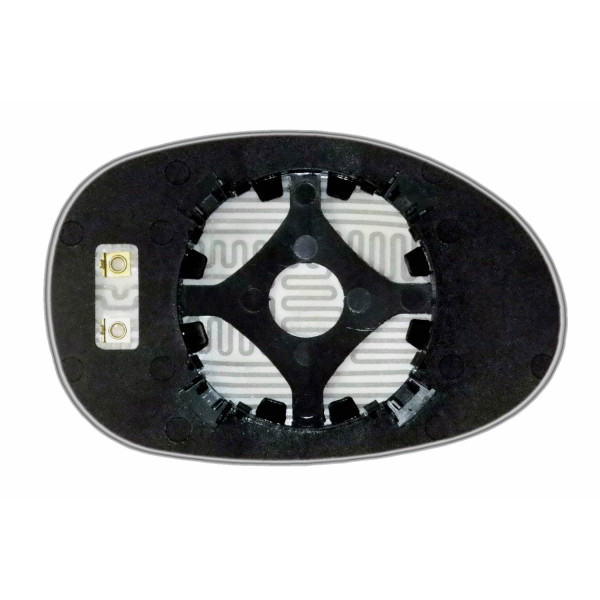 Змінний елемент автодзеркала асферичної форми, яка встановлюється в корпус дзеркала. Завдяки спеціальній випуклій геометрії поверхні водій отримує розширений кут огляду та ефективний контроль за ситуацією на дорозі в сліпих зонах. На світлині елемент дзеркала зі зворотної сторони.