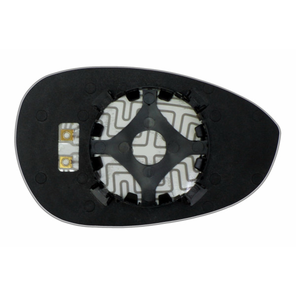 Змінний елемент автодзеркала асферичної форми, яка встановлюється в корпус дзеркала. Завдяки спеціальній випуклій геометрії поверхні водій отримує розширений кут огляду та ефективний контроль за ситуацією на дорозі в сліпих зонах. На світлині елемент дзеркала зі зворотної сторони.
