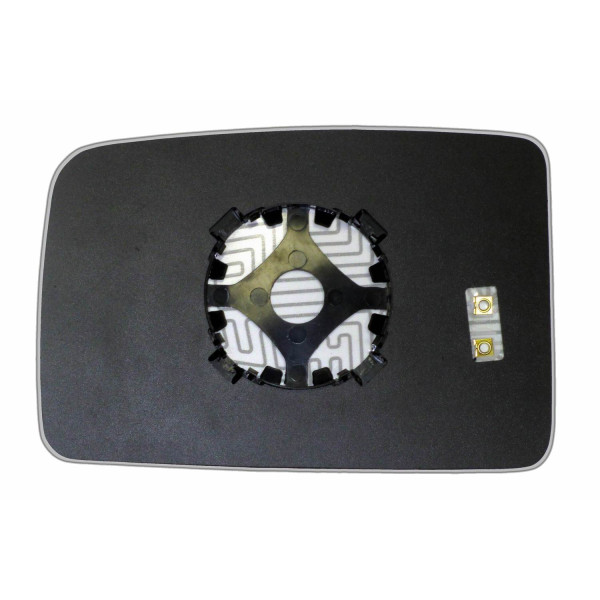 Змінний елемент автодзеркала асферичної форми, яка встановлюється в корпус дзеркала. Завдяки спеціальній випуклій геометрії поверхні водій отримує розширений кут огляду та ефективний контроль за ситуацією на дорозі в сліпих зонах. На світлині елемент дзеркала зі зворотної сторони.