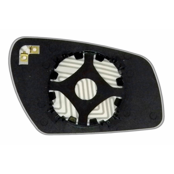 Змінний елемент автодзеркала сферичної форми, яка встановлюється в корпус дзеркала. Завдяки спеціальній випуклій геометрії поверхні водій отримує розширений кут огляду та ефективний контроль за ситуацією на дорозі в сліпих зонах. На світлині елемент дзеркала зі зворотної сторони.
