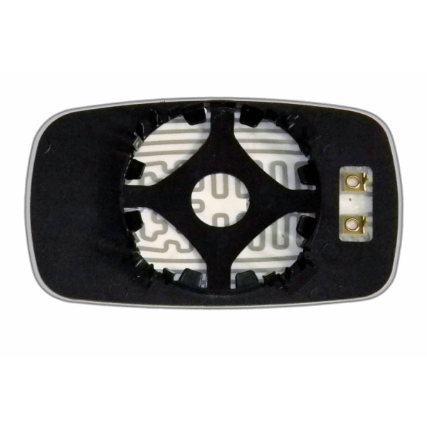 Змінний елемент автодзеркала асферичної форми, яка встановлюється в корпус дзеркала. Завдяки спеціальній випуклій геометрії поверхні водій отримує розширений кут огляду та ефективний контроль за ситуацією на дорозі в сліпих зонах. На світлині елемент дзеркала зі зворотної сторони.