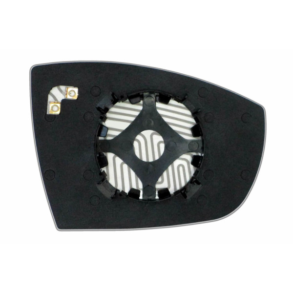 Змінний елемент автодзеркала асферичної форми, яка встановлюється в корпус дзеркала. Завдяки спеціальній випуклій геометрії поверхні водій отримує розширений кут огляду та ефективний контроль за ситуацією на дорозі в сліпих зонах. На світлині елемент дзеркала зі зворотної сторони.