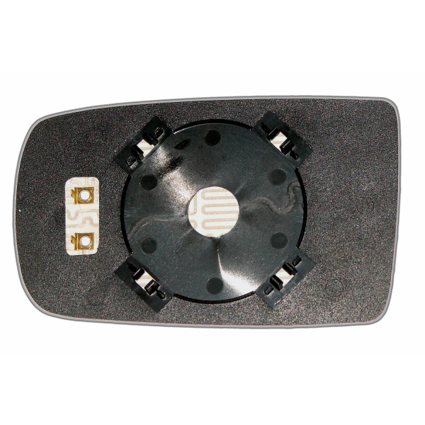 Змінний елемент автодзеркала асферичної форми, яка встановлюється в корпус дзеркала. Завдяки спеціальній випуклій геометрії поверхні водій отримує розширений кут огляду та ефективний контроль за ситуацією на дорозі в сліпих зонах. На світлині елемент дзеркала зі зворотної сторони.
