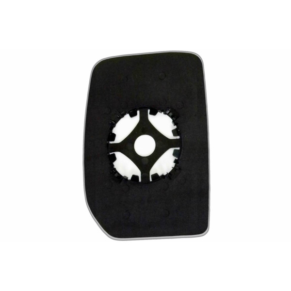 Змінний елемент автодзеркала асферичної форми, яка встановлюється в корпус дзеркала. Завдяки спеціальній випуклій геометрії поверхні водій отримує розширений кут огляду та ефективний контроль за ситуацією на дорозі в сліпих зонах. На світлині елемент дзеркала зі зворотної сторони.