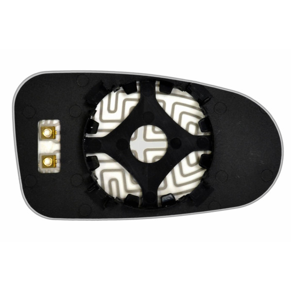 Змінний елемент автодзеркала асферичної форми, яка встановлюється в корпус дзеркала. Завдяки спеціальній випуклій геометрії поверхні водій отримує розширений кут огляду та ефективний контроль за ситуацією на дорозі в сліпих зонах. На світлині елемент дзеркала зі зворотної сторони.