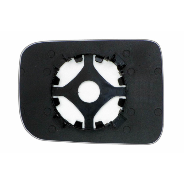 Змінний елемент автодзеркала асферичної форми, яка встановлюється в корпус дзеркала. Завдяки спеціальній випуклій геометрії поверхні водій отримує розширений кут огляду та ефективний контроль за ситуацією на дорозі в сліпих зонах. На світлині елемент дзеркала зі зворотної сторони.