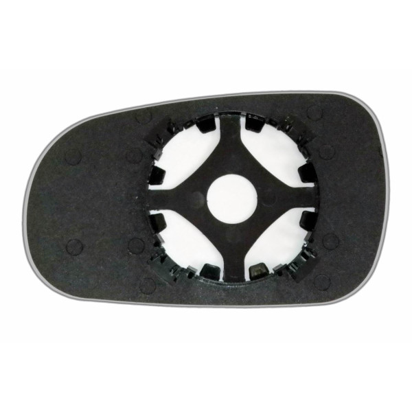 Змінний елемент автодзеркала асферичної форми, яка встановлюється в корпус дзеркала. Завдяки спеціальній випуклій геометрії поверхні водій отримує розширений кут огляду та ефективний контроль за ситуацією на дорозі в сліпих зонах. На світлині елемент дзеркала зі зворотної сторони.
