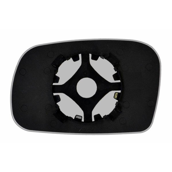 Змінний елемент автодзеркала асферичної форми, яка встановлюється в корпус дзеркала. Завдяки спеціальній випуклій геометрії поверхні водій отримує розширений кут огляду та ефективний контроль за ситуацією на дорозі в сліпих зонах. На світлині елемент дзеркала зі зворотної сторони.