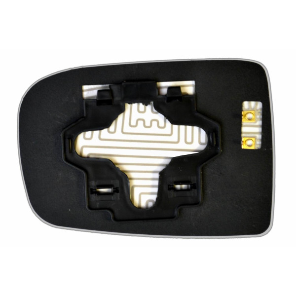 Змінний елемент автодзеркала асферичної форми, яка встановлюється в корпус дзеркала. Завдяки спеціальній випуклій геометрії поверхні водій отримує розширений кут огляду та ефективний контроль за ситуацією на дорозі в сліпих зонах. На світлині елемент дзеркала зі зворотної сторони.