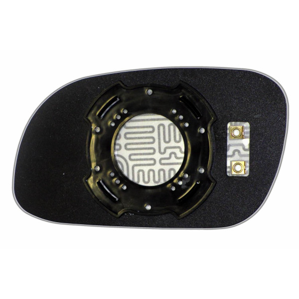 Змінний елемент автодзеркала асферичної форми, яка встановлюється в корпус дзеркала. Завдяки спеціальній випуклій геометрії поверхні водій отримує розширений кут огляду та ефективний контроль за ситуацією на дорозі в сліпих зонах. На світлині елемент дзеркала зі зворотної сторони.