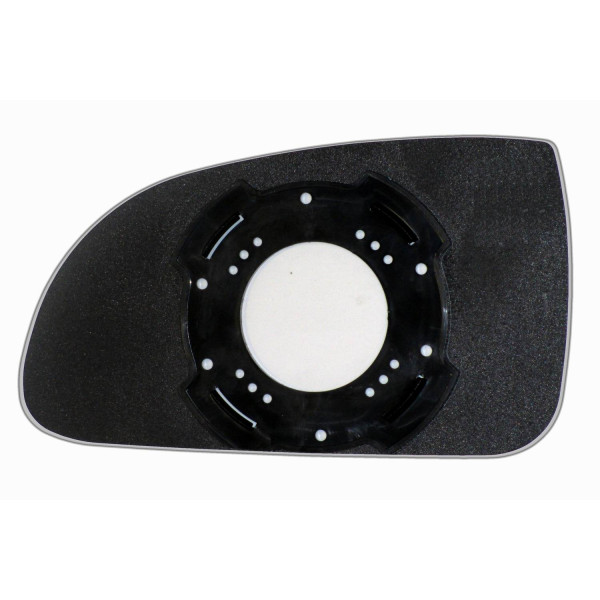 Змінний елемент автодзеркала асферичної форми, яка встановлюється в корпус дзеркала. Завдяки спеціальній випуклій геометрії поверхні водій отримує розширений кут огляду та ефективний контроль за ситуацією на дорозі в сліпих зонах. На світлині елемент дзеркала зі зворотної сторони.