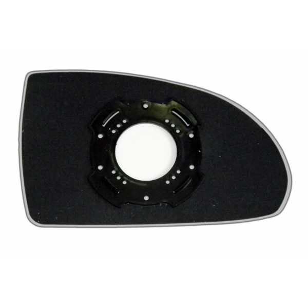 Змінний елемент автодзеркала асферичної форми, яка встановлюється в корпус дзеркала. Завдяки спеціальній випуклій геометрії поверхні водій отримує розширений кут огляду та ефективний контроль за ситуацією на дорозі в сліпих зонах. На світлині елемент дзеркала зі зворотної сторони.