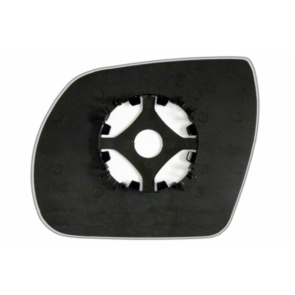 Змінний елемент автодзеркала асферичної форми, яка встановлюється в корпус дзеркала. Завдяки спеціальній випуклій геометрії поверхні водій отримує розширений кут огляду та ефективний контроль за ситуацією на дорозі в сліпих зонах. На світлині елемент дзеркала зі зворотної сторони.