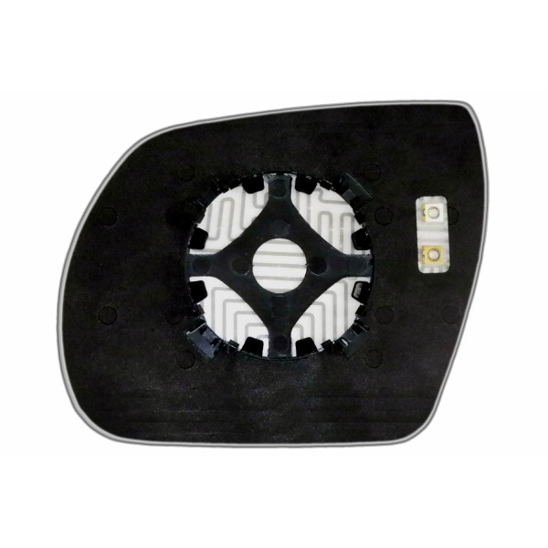 Змінний елемент автодзеркала асферичної форми, яка встановлюється в корпус дзеркала. Завдяки спеціальній випуклій геометрії поверхні водій отримує розширений кут огляду та ефективний контроль за ситуацією на дорозі в сліпих зонах. На світлині елемент дзеркала зі зворотної сторони.