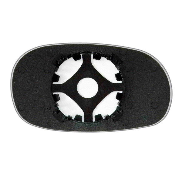 Змінний елемент автодзеркала сферичної форми, яка встановлюється в корпус дзеркала. Завдяки спеціальній випуклій геометрії поверхні водій отримує розширений кут огляду та ефективний контроль за ситуацією на дорозі в сліпих зонах. На світлині елемент дзеркала зі зворотної сторони.