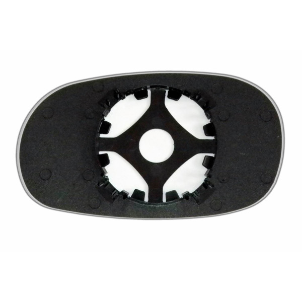 Змінний елемент автодзеркала асферичної форми, яка встановлюється в корпус дзеркала. Завдяки спеціальній випуклій геометрії поверхні водій отримує розширений кут огляду та ефективний контроль за ситуацією на дорозі в сліпих зонах. На світлині елемент дзеркала зі зворотної сторони.