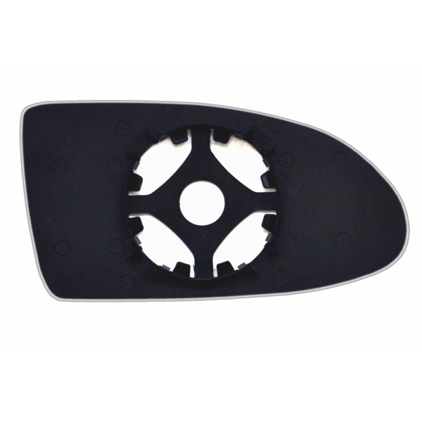 Змінний елемент автодзеркала асферичної форми, яка встановлюється в корпус дзеркала. Завдяки спеціальній випуклій геометрії поверхні водій отримує розширений кут огляду та ефективний контроль за ситуацією на дорозі в сліпих зонах. На світлині елемент дзеркала зі зворотної сторони.