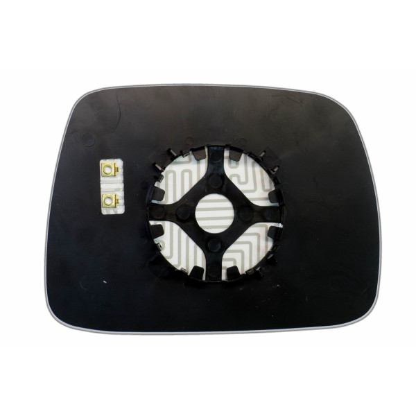Змінний елемент автодзеркала асферичної форми, яка встановлюється в корпус дзеркала. Завдяки спеціальній випуклій геометрії поверхні водій отримує розширений кут огляду та ефективний контроль за ситуацією на дорозі в сліпих зонах. На світлині елемент дзеркала зі зворотної сторони.
