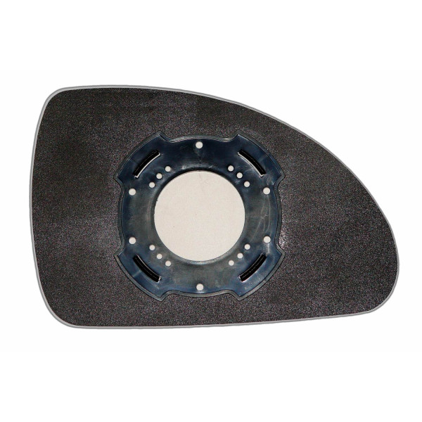 Змінний елемент автодзеркала асферичної форми, яка встановлюється в корпус дзеркала. Завдяки спеціальній випуклій геометрії поверхні водій отримує розширений кут огляду та ефективний контроль за ситуацією на дорозі в сліпих зонах. На світлині елемент дзеркала зі зворотної сторони.