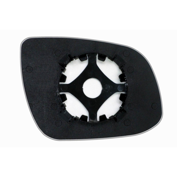 Змінний елемент автодзеркала асферичної форми, яка встановлюється в корпус дзеркала. Завдяки спеціальній випуклій геометрії поверхні водій отримує розширений кут огляду та ефективний контроль за ситуацією на дорозі в сліпих зонах. На світлині елемент дзеркала зі зворотної сторони.