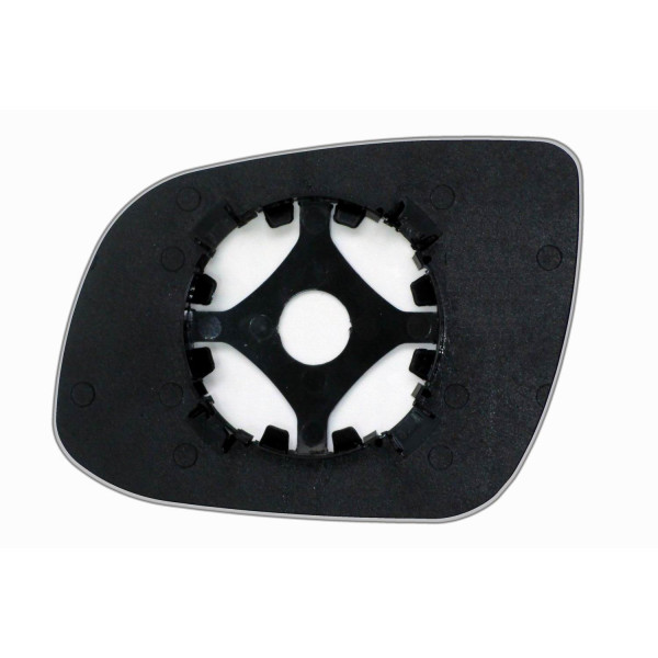 Змінний елемент автодзеркала асферичної форми, яка встановлюється в корпус дзеркала. Завдяки спеціальній випуклій геометрії поверхні водій отримує розширений кут огляду та ефективний контроль за ситуацією на дорозі в сліпих зонах. На світлині елемент дзеркала зі зворотної сторони.