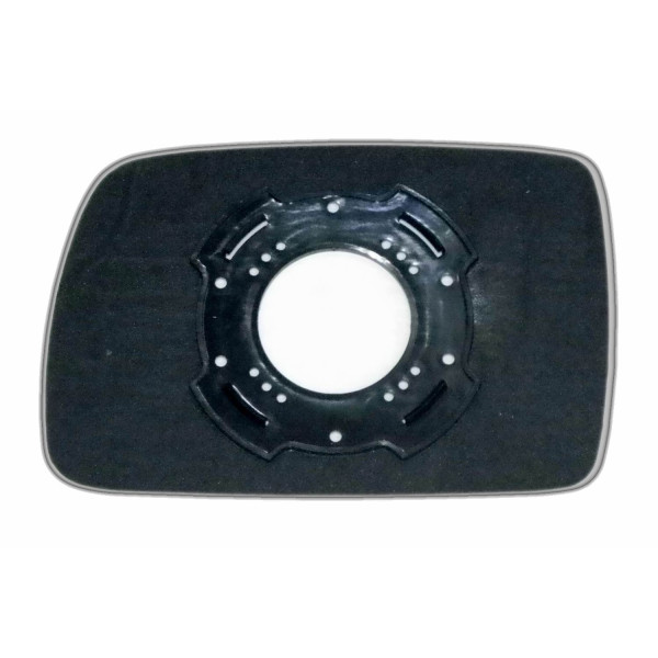 Змінний елемент автодзеркала асферичної форми, яка встановлюється в корпус дзеркала. Завдяки спеціальній випуклій геометрії поверхні водій отримує розширений кут огляду та ефективний контроль за ситуацією на дорозі в сліпих зонах. На світлині елемент дзеркала зі зворотної сторони.
