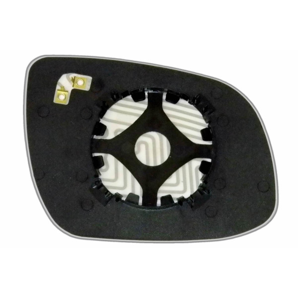 Змінний елемент автодзеркала асферичної форми, яка встановлюється в корпус дзеркала. Завдяки спеціальній випуклій геометрії поверхні водій отримує розширений кут огляду та ефективний контроль за ситуацією на дорозі в сліпих зонах. На світлині елемент дзеркала зі зворотної сторони.