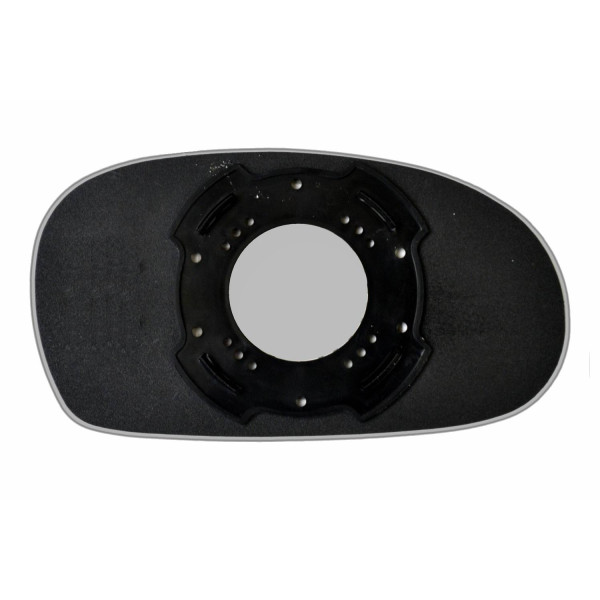 Змінний елемент автодзеркала асферичної форми, яка встановлюється в корпус дзеркала. Завдяки спеціальній випуклій геометрії поверхні водій отримує розширений кут огляду та ефективний контроль за ситуацією на дорозі в сліпих зонах. На світлині елемент дзеркала зі зворотної сторони.