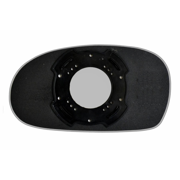 Змінний елемент автодзеркала асферичної форми, яка встановлюється в корпус дзеркала. Завдяки спеціальній випуклій геометрії поверхні водій отримує розширений кут огляду та ефективний контроль за ситуацією на дорозі в сліпих зонах. На світлині елемент дзеркала зі зворотної сторони.