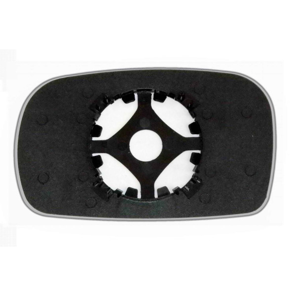 Змінний елемент автодзеркала сферичної форми, яка встановлюється в корпус дзеркала. Завдяки спеціальній випуклій геометрії поверхні водій отримує розширений кут огляду та ефективний контроль за ситуацією на дорозі в сліпих зонах. На світлині елемент дзеркала зі зворотної сторони.